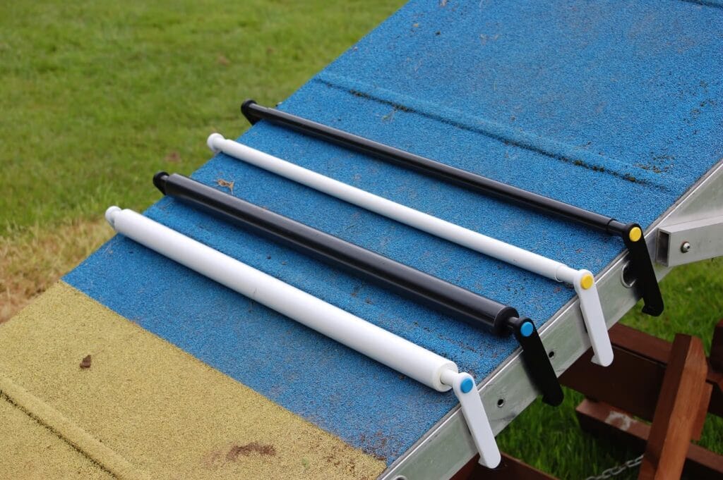 Like all sports, most of a competitor’s time is spent in training with only a small part in competition. Training requires practice and equipment. Some of that equipment is in the form of specialist training aids which aren’t readily available to the public and those that are can be very expensive eliminating the amateur agiliteur.